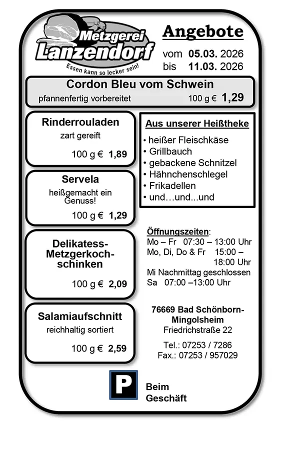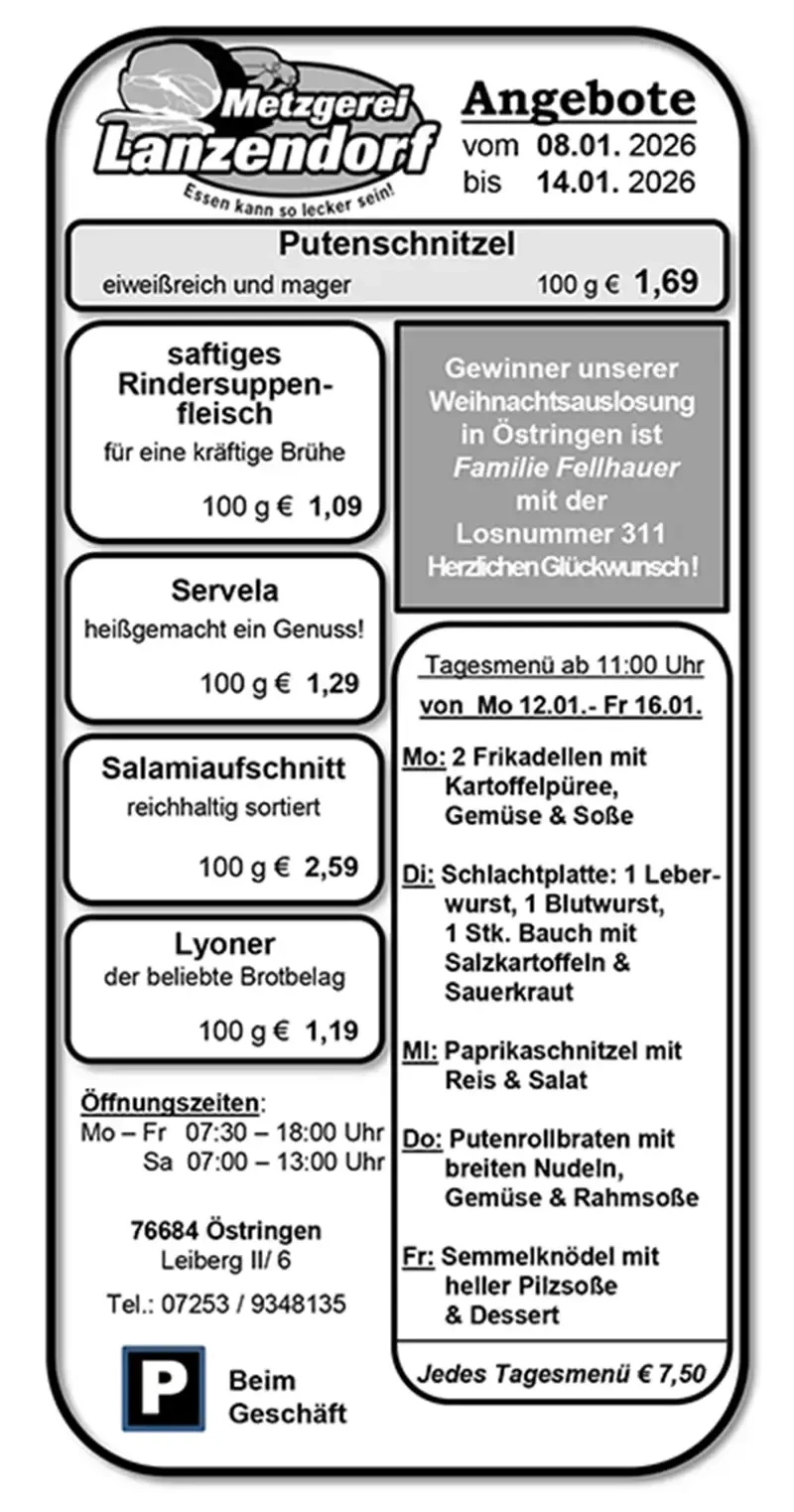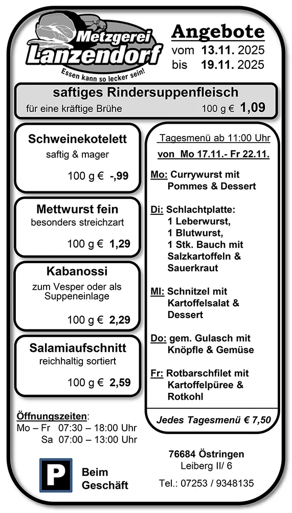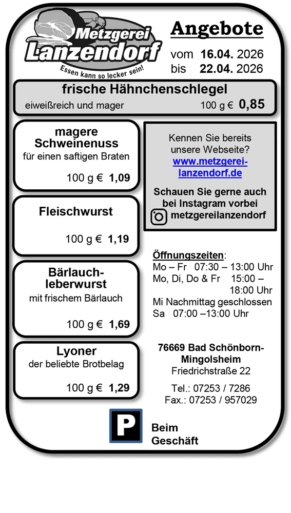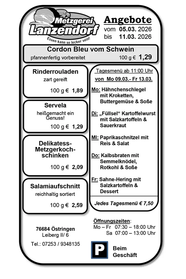 Die Angebote der Metzgerei Lanzendorf im wöchentlichen Wechsel