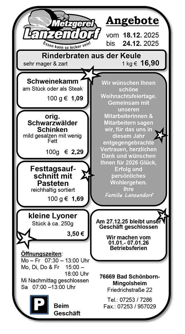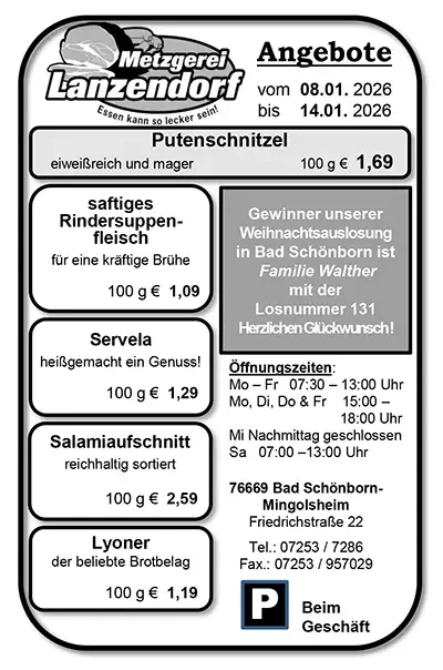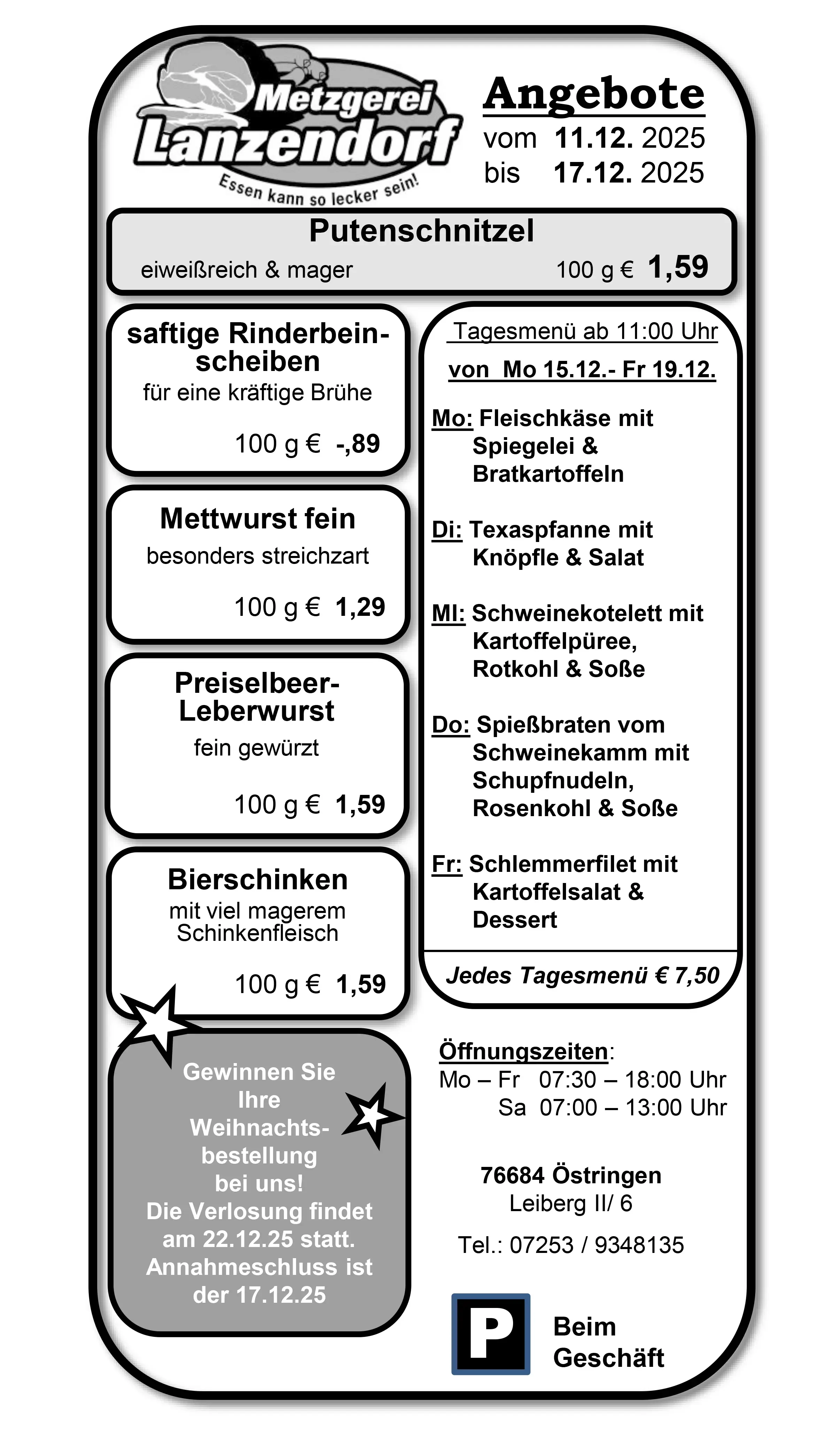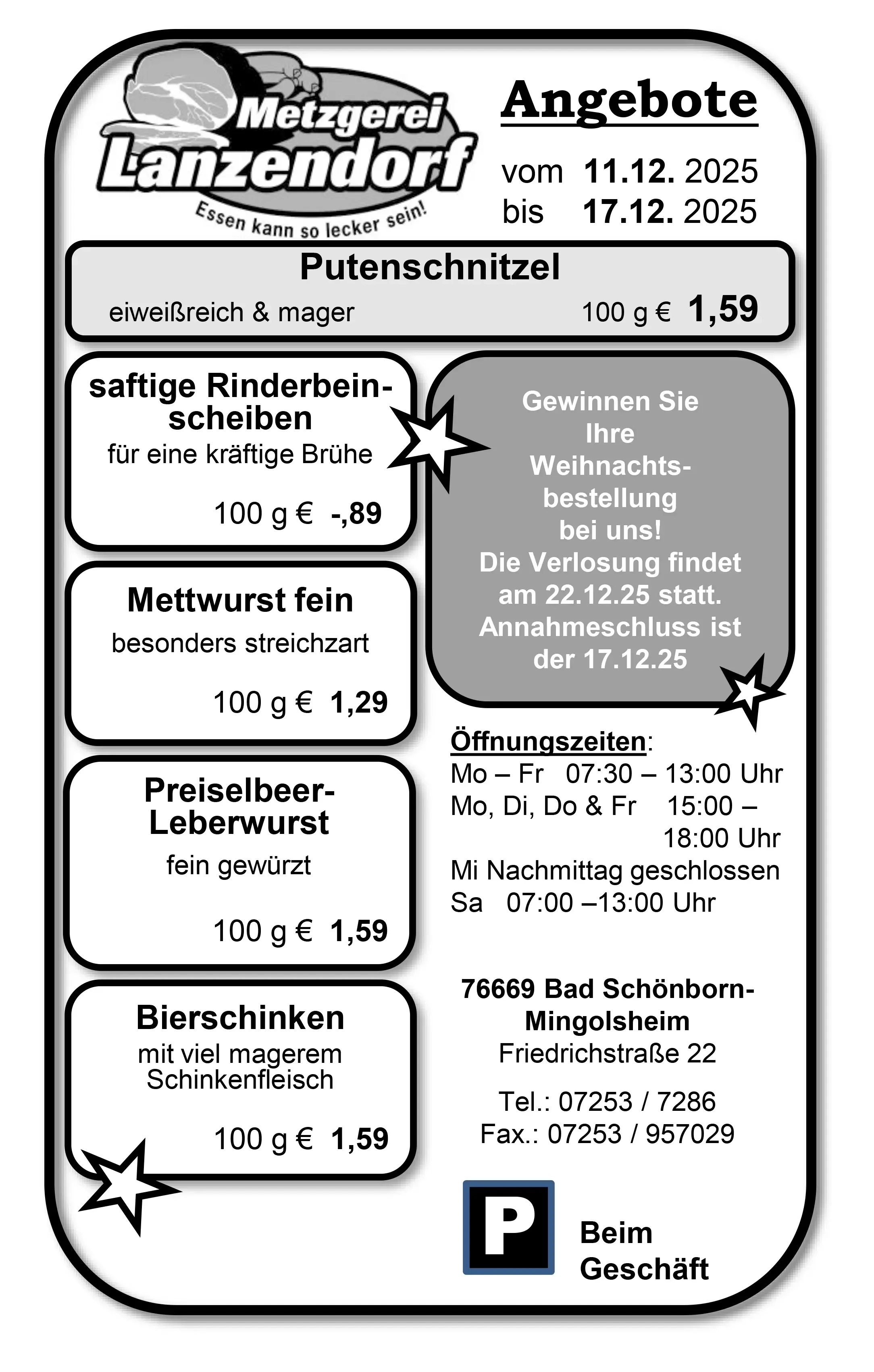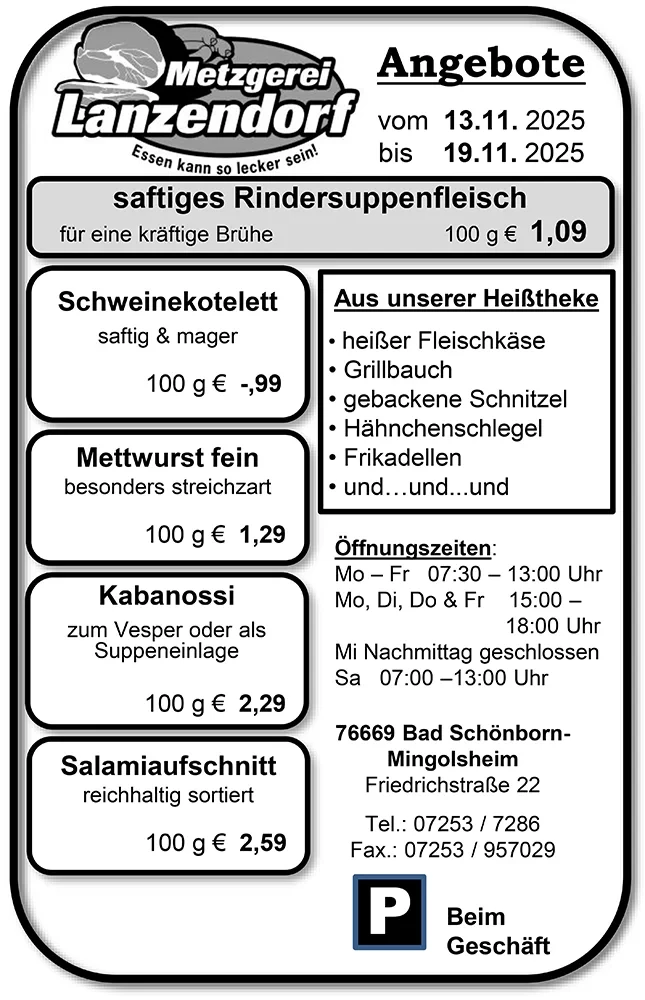 Die Angebote der Metzgerei Lanzendorf im wöchentlichen Wechsel